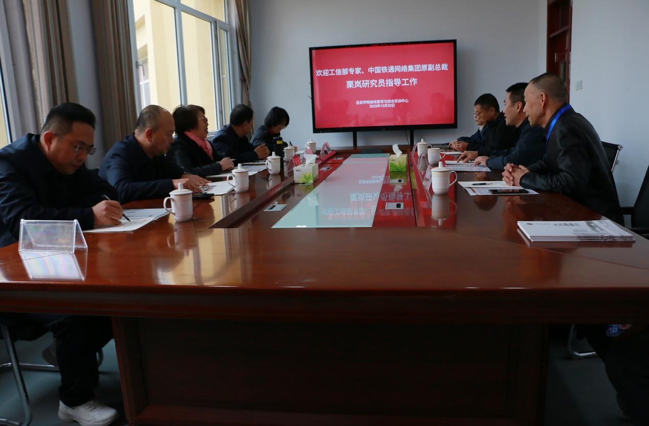 10月20日,工信部专家、中国铁通网络集团原副总裁栗岚研究员一行莅临开云交口实训基地开展考察调研,党委常委、副校长张云奇陪同,继续教育与综合实训中心相关人员参加调研。